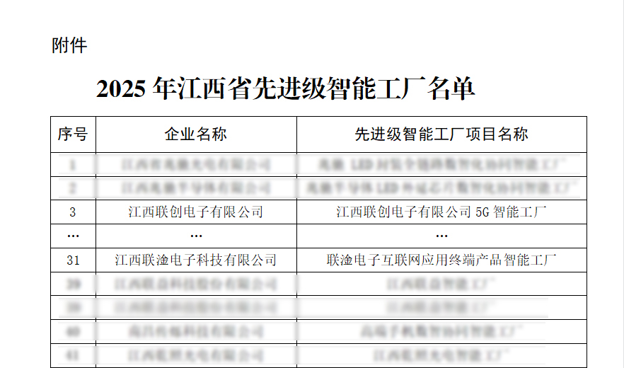 近日,江西省工业和信息化厅正式公布2025年江西省“先进级智能工厂”名单,186家企业入选。其中安博官方在线入口,安博(中国)、江西联淦电子科技有限公司2家联创电子系企业名列榜单。这标志着公司在智能制造领域的创新成果再次获得政府权威认可。